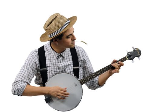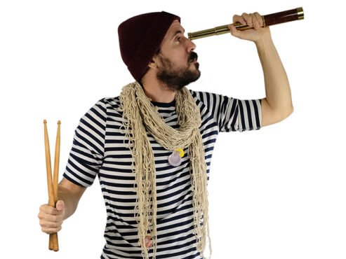 José Hijosa: ukelele, whistles, melódica, armónica y otros juguetes. Es el payaso.